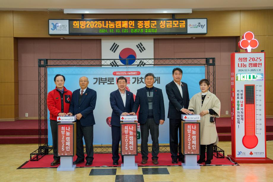 충북 증평군은 충북사회복지공동모금회와 13일 군청 대회의실에서 ‘희망2025나눔캠페인’ 모금행사를 개최했다고 밝혔다.
