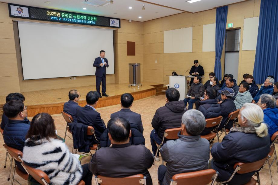 충북 증평군은 12일 농업기술센터 대회의실에서 ‘2025 농업정책 간담회’를 추진했다고 밝혔다.