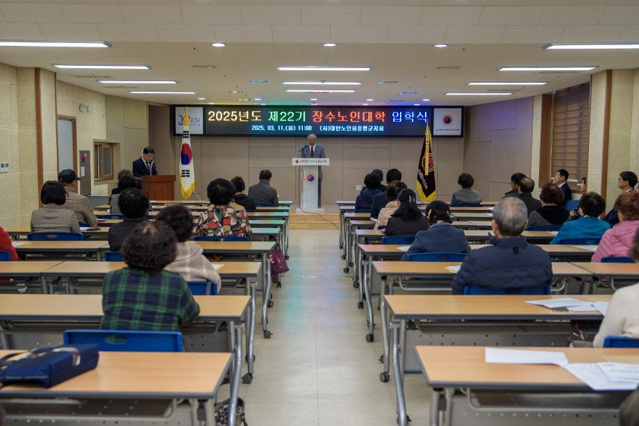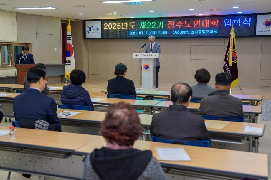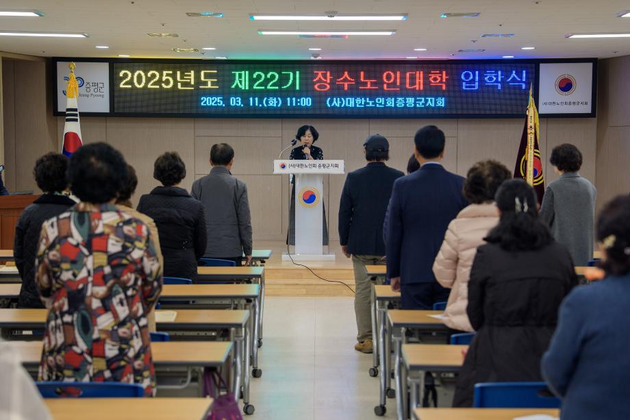 충북 증평군은 11일 제22기 대한노인회 증평군지회 장수노인대학(학장 이창숙) 입학식을 노인지회 회의실에서 개최했다고 밝혔다.