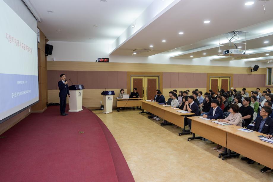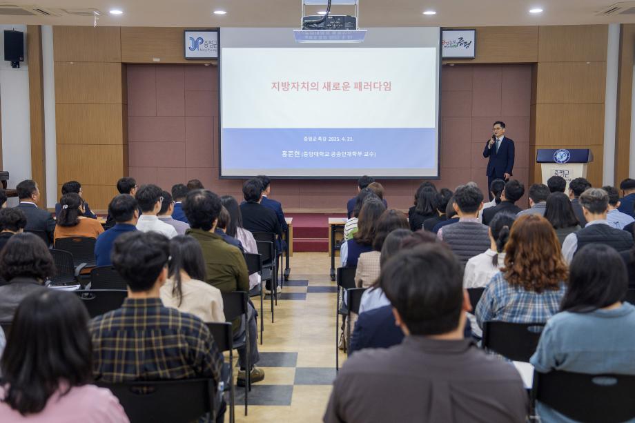 충북 증평군이 21일 군청 대회의실에서 공직자 100여 명이 참석한 가운데 지방자치의 새로운 길을 모색하는 특별강연을 열었다.
