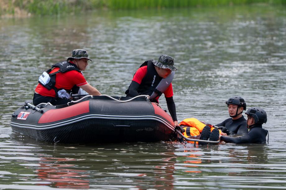 충북 증평군이 여름철 풍수해에 대비한 대응체계를 점검하고자 28일 보강천 일대에서 ‘2025년 재난대응 안전한국훈련’을 실시했다.