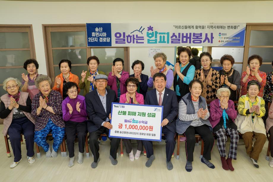 충북 증평군 송산 휴먼시아 2단지 경로당 어르신들의 정성과 온기가 담긴 성금 100만 원이 산불 피해로 어려움을 겪고 있는 이재민들을 향해 전해졌다.