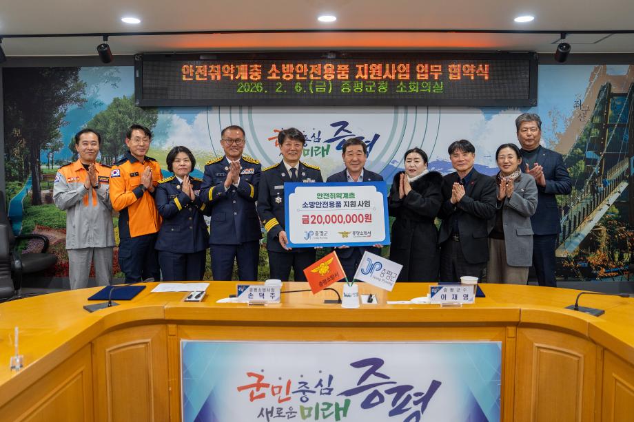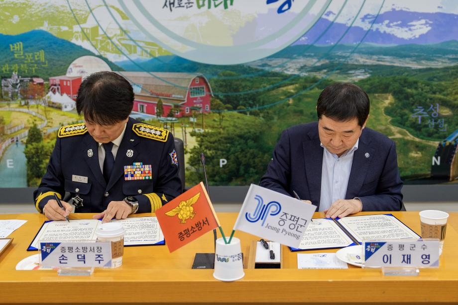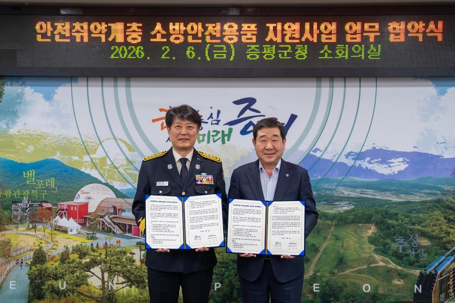 충북 증평군이 6일 군청 소회의실에서 증평소방서(서장 손덕주)와 지역 내 안전취약계층의 주거안전망 강화를 위한‘소방안전용품 지원사업 업무협약(MOU)’을 체결했다고 밝혔다.