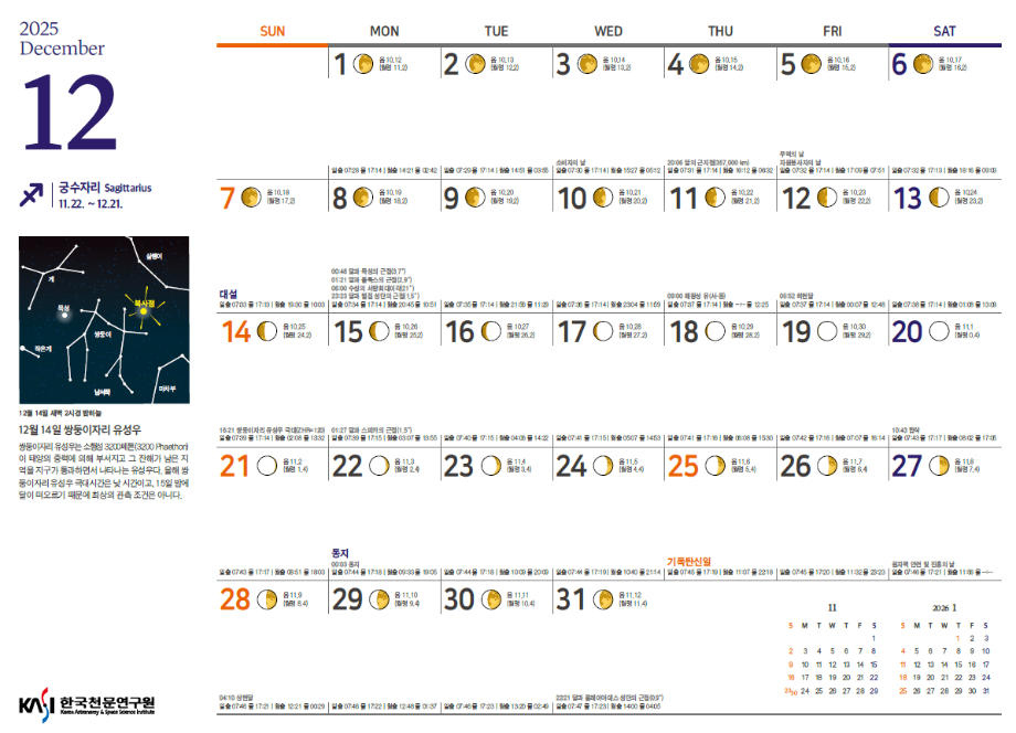 천체현상은 한국천문연구원에서 제공했습니다.